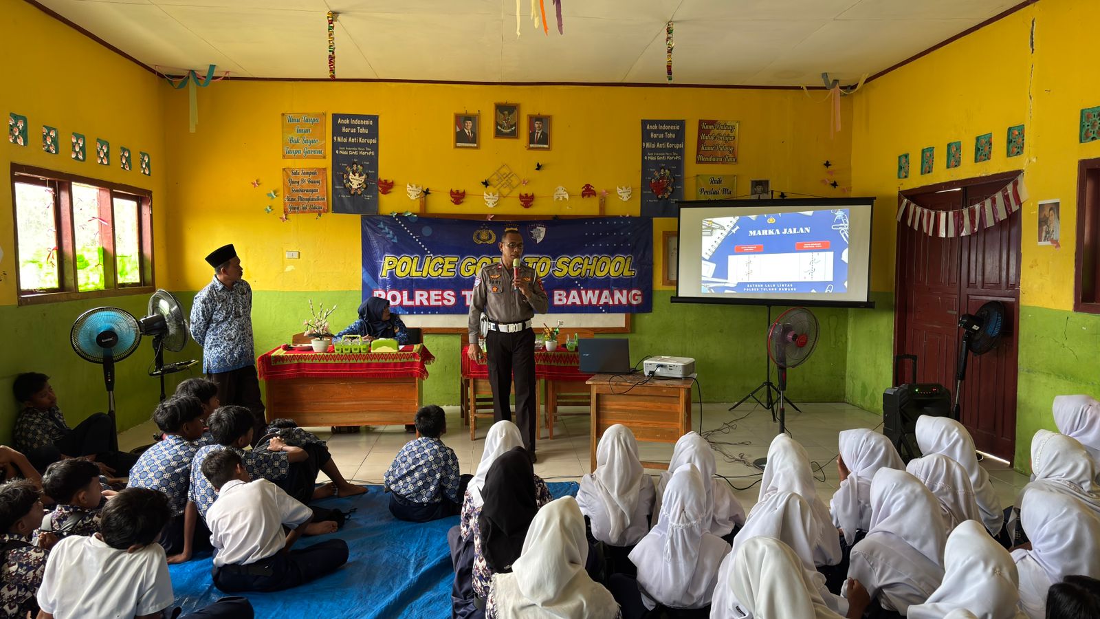 Dalam giat tersebut, petugas dari Unit Kamsel yaitu AIPTU Deny Ertanto, S.Pd. dan BRIPDA Hevan Argia menyampaikan materi tentang pengenalan rambu-rambu lalu lintas, imbauan untuk tertib berlalu lintas, serta ajakan untuk menjadi pelopor keselamatan berlalu lintas di lingkungan sekolah dan masyarakat.
