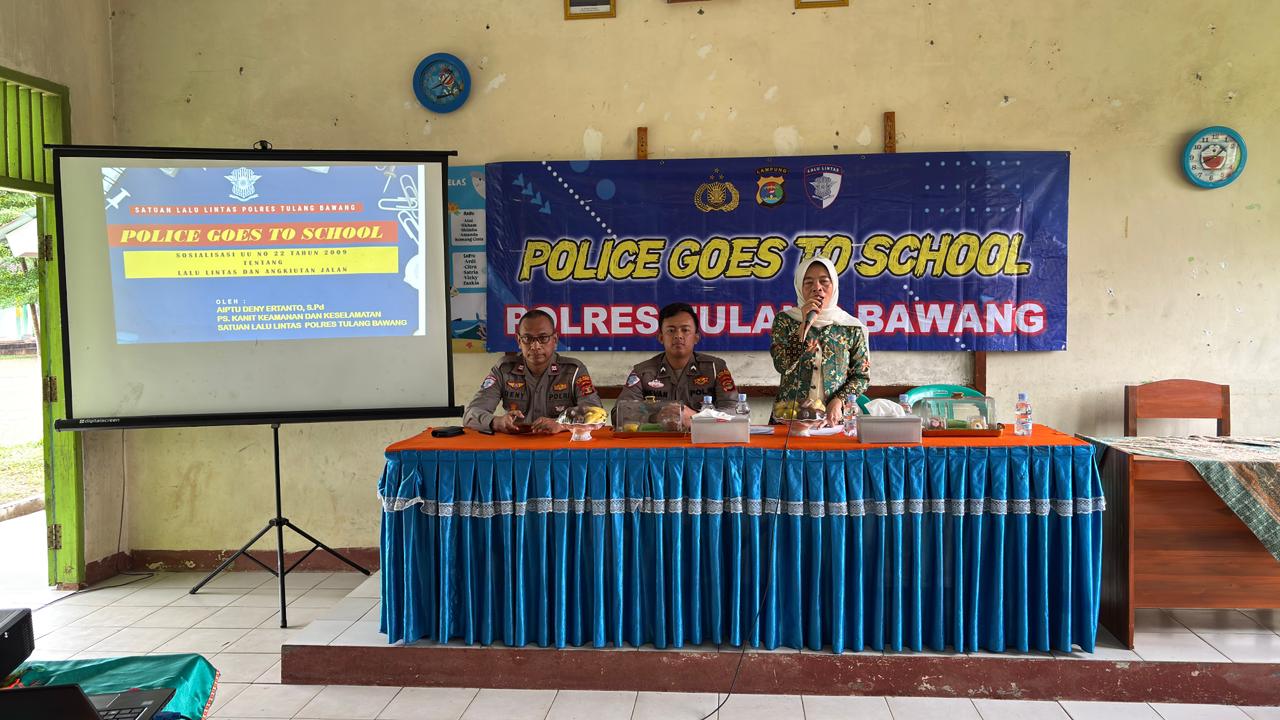Tulang Bawang – Dalam upaya menanamkan budaya tertib berlalu lintas sejak usia dini, Satuan Lalu Lintas Polres Tulang Bawang kembali menggelar program Polisi Goes to School, Kamis (2/10/2025). Kegiatan ini berlangsung di SMP Negeri 1 Banjar Margo dan diikuti oleh 156 siswa serta 8 guru pendamping.