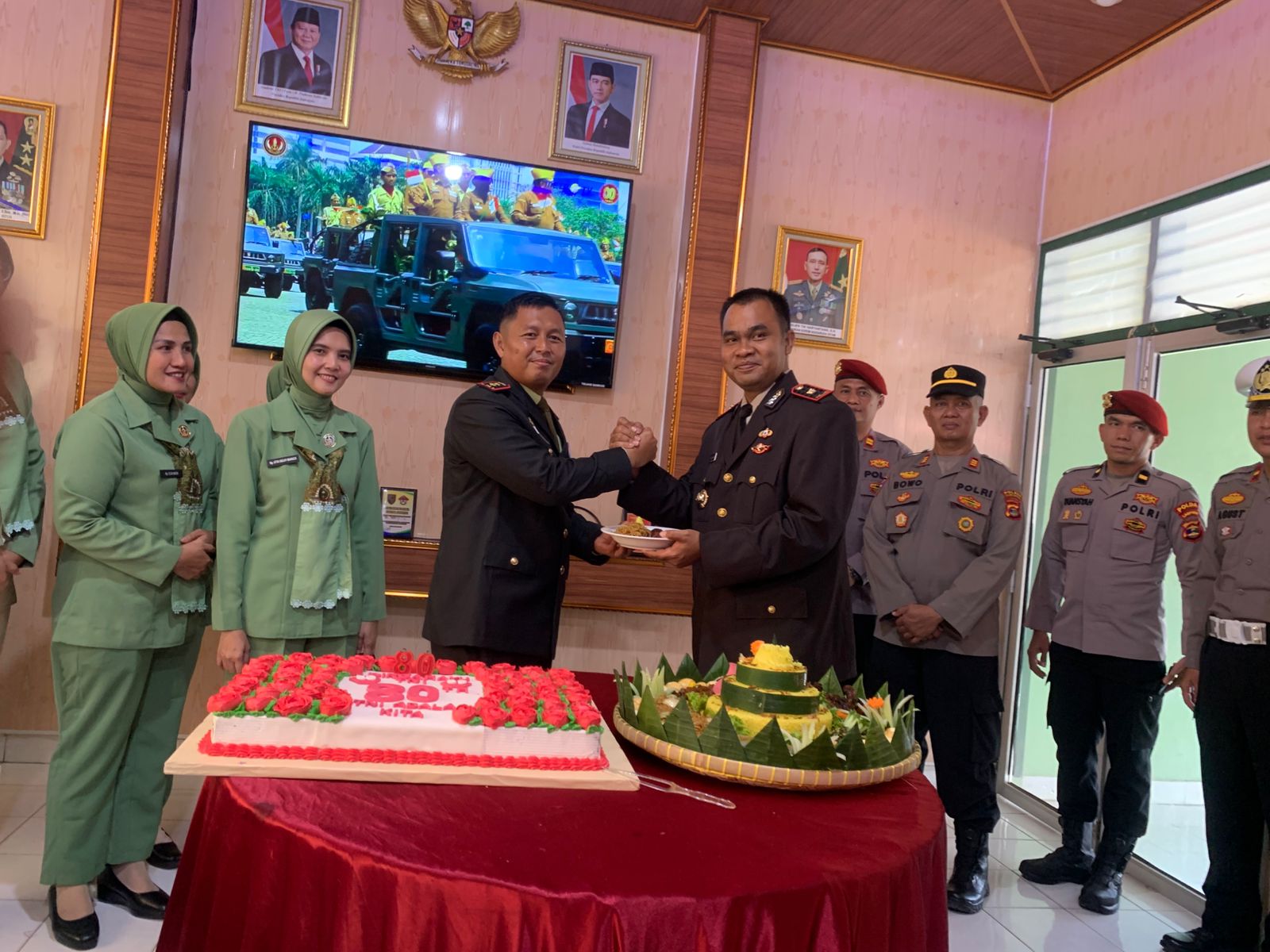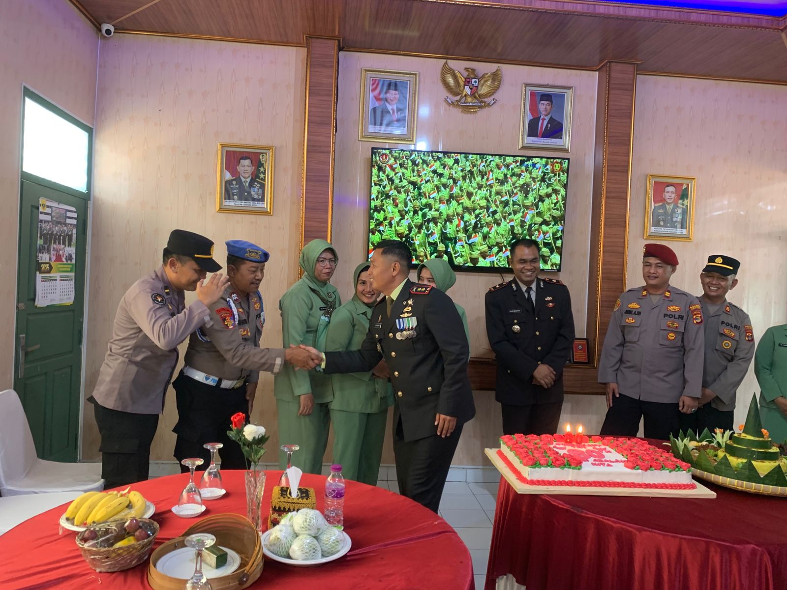 Kegiatan penuh keakraban tersebut berlangsung hangat dengan prosesi pemotongan kue ulang tahun dan doa bersama, sebagai simbol soliditas dan sinergitas antara TNI dan Polri di wilayah Kabupaten Tulang Bawang.